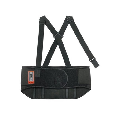 The Ergodyne standard elastic back support has a 22.8cm (9 inch) all-elastic body for extra firm support. Designed with a contoured high-cut front panel. The polypropylene stays are non-conductive. For good fit and comfort there are adjustable, detachable suspenders. Features stretchable bias binding with zig-zag stitching and rubber track webbing.