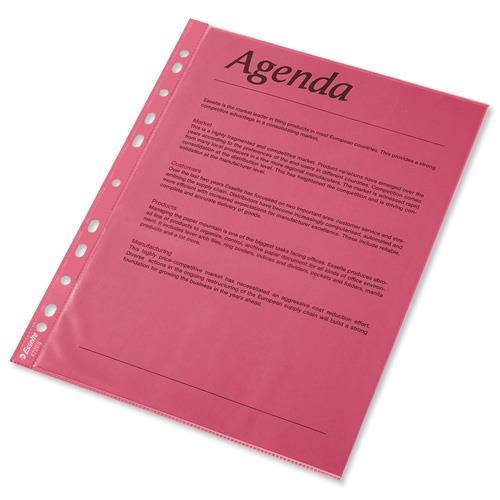 Esselte Coloured Pocket Polypropylene Multipunched Top-opening A4 Red Ref 47203 [Pack 10]