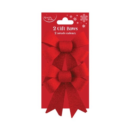 The finishing touch to your wrapped gifts, gift bags and boxes. This set includes 2 red glitter bows, approx. 13x14.5cm in size.