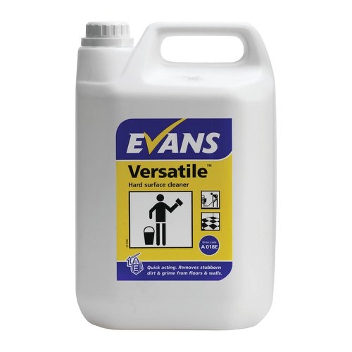 This Evans Versatile Hard Surface Cleaner will rapidly clean and degrease a wide range of materials including vinyl, concrete, enamel and more. It is ideal for professional cleaners who need a strong, all-purpose cleaner to tackle a variety of situations. Supplied as an economical concentrate that can be diluted for mopping and wiping, or for use as a spray in conjunction with a high speed floor machine. It is lightly fragranced for long-lasting freshness. This pack contains two 5 litre bottles.