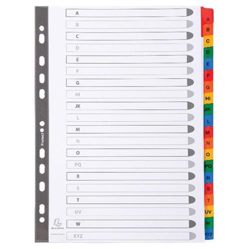 This Exacompta Guildhall A4 index is made from quality 160gsm white card with multi-coloured tabs that are labelled A-Z for quick referencing. The 20 part index is also multi-punched for filing in standard ring binders and lever arch files.