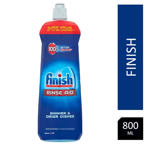 Finish Rinse Aid is specifically designed to clear away residue on dishes throughout the rinse cycle, performing 5x power actions for superior cleaning results. The rinse aid includes a glass protection ingredient which protects against glass corrosion when used with Finish Shine and Protect Detergents, and offers drier dishers, versus detergent alone.