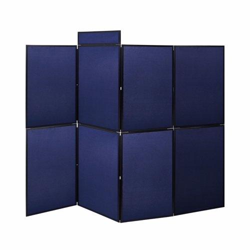 Plastic framed panels with header for easy display system. Floor standing 8 panel display board blue felt with header.