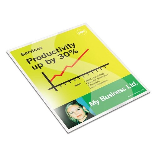 Laminating pouches are a convenient, everyday solution to protect and enhance valuable presentation pages, reference lists, product sheets, notices, photographs and certificates. Suitable for use with any A3 size Laminator, A4 HighSpeed Laminating Pouches feed in along the long edge for fast, accurate loading and up to 30% quicker laminating time.150 Micron. A4 format. Pack size 100.