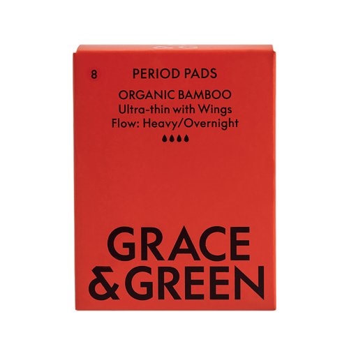 Grace and Green Organic Cotton Bamboo Heavy Period Pads (Pack of 8) GGBAMNIGHT05