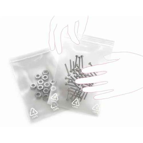 Resealable, reusable mini-grip bags made from polyethylene.