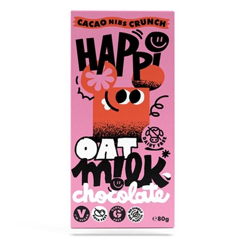 HAPPi Cacao Nibs Crunch Oat Milk Chocolate 80g [Pack of 12]