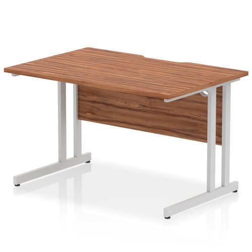 Impulse 1200 x 800mm Scalloped Edge Straight Office Desk Walnut Top Silver Cantilever Leg