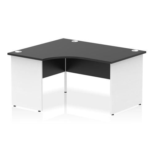 Impulse 1400mm Left Crescent Office Desk Black Top White Panel End Leg