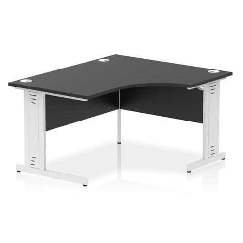 Impulse 1400mm Right Crescent Office Desk Black Top White Cable Managed Leg