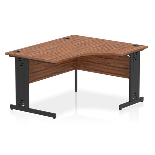 Impulse 1400mm Right Crescent Office Desk Walnut Top Black Cable Managed Leg