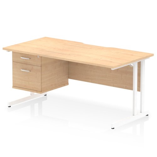 Impulse 1600 x 800mm Scalloped Edge Straight Office Desk Maple Top White Cantilever Leg Workstation 1 x 2 Drawer Fixed Pedestal