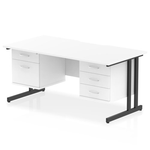 Impulse 1600 x 800mm Scalloped Edge Straight Office Desk White Top Black Cantilever Leg Workstation 1 x 2 Drawer 1 x 3 Drawer Fixed Pedestal