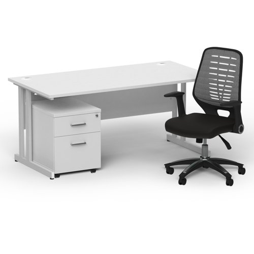 Impulse 1600mm Straight Office Desk White Top Silver Cantilever Leg with 2 Drawer Mobile Pedestal and Relay Silver Back