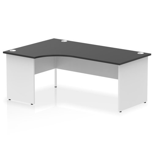 Impulse 1800mm Left Crescent Office Desk Black Top White Panel End Leg