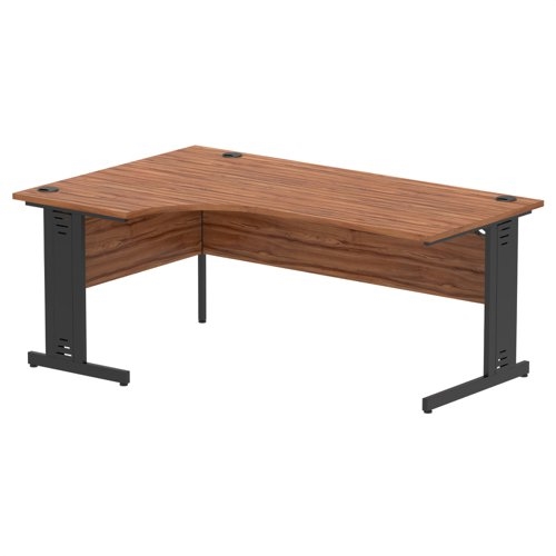 Impulse 1800mm Left Crescent Office Desk Walnut Top Black Cable Managed Leg