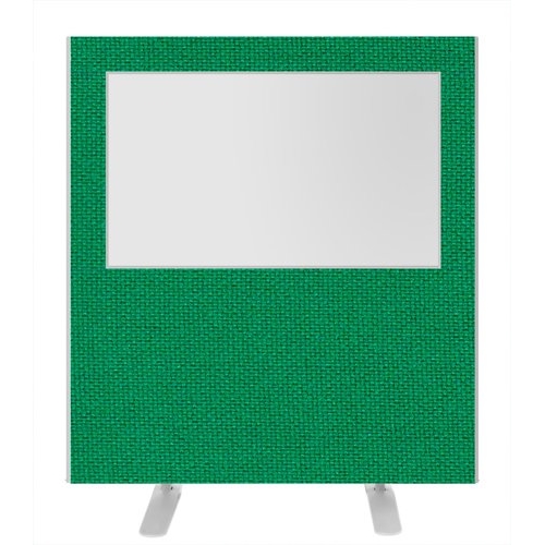 Impulse Plus Clear Half Vision 1200/1200 Floor Free Standing Screen Palm Green Fabric Light Grey Edges