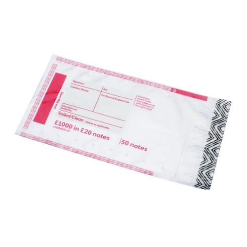 Help keep cash secure in transit with these Initial cash bags for notes. A tamper evident security feature will show if the bag has been heated, frozen, ripped or in any way tampered with. A tear-off receipt also allows you to track each bag throughout transit. The durable design is tear and rip resistant for extra security. This pack contains 500 bags printed with 1000 in 20 notes.