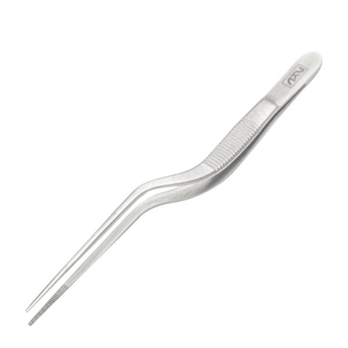 The Japanese Knife Company 14cm cranked tweezers are the essential addition to any chef's toolkit. Designed for accuracy, these strong tweezers are perfect for fine and exact plating and decorating, especially canapés and other similar delicate foods. Due to the shape of the tweezers, they lift food at its base, preventing the tweezers from touching delicate foods such as creams or toppings. And thanks to their strong stainless steel construction, the Japanese Knife Company cranked tweezers are highly durable and easy to clean.