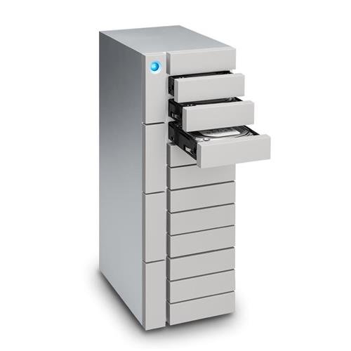 With up to 120TB of capacity on your desktop, up to 2600MB/s speeds, and RAID 5/6, the LaCie 12big Thunderbolt 3 lets you rein in the stampede of data from 4/5/6K cameras. LaCie harnessed the breakthrough performance potential of the Thunderbolt 3 I/O and squeezed out speeds of up to 2600MB/s-and 2400MB/s in RAID 5-to help slash time off nearly every task in your post-production workflow. Ingest RAW footage from a Blackmagic cinema camera into Adobe Premiere Pro, edit uncompressed HD 10-bit and 12-bit video, and fly through thumbnail and preview rendering on your biggest projects. With double the video bandwidth of its predecessor, Thunderbolt 3 lets you daisy chain dual 4K displays or a single 5K display to the LaCie 12big. It's even possible to power a compatible laptop through the Thunderbolt 3 connection. Get up to 120TB on your desktop-in the same footprint as an iPad Air. Invest up front in a future-proof, RAID-protected solution to improve data access and security, which can help you save money in the long term.