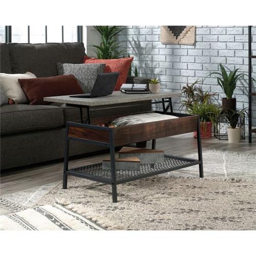 - Lift up coffee / work table in Rich Walnut finish with slate grey accen