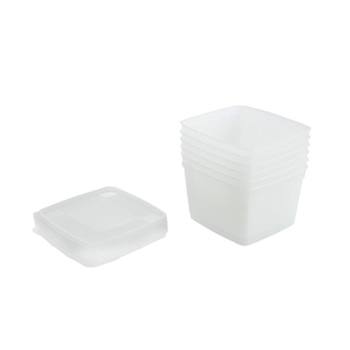 Soft Modulus Boxes : Ideal for storing and preserving food in the professional kitchen refrigerator and freezer or bar. Compatible for heating in microwave ovens. Small, space-saving packaging, hermetically sealed, transparent lid for quick identification of the contents. Packs of 6 with lids.