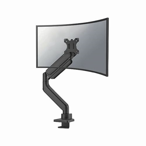 This desk mount with full motion for curved ultra-wide screens up to 49 inches. The mount features a strengthened head specifically designed for curved ultra-wide screens and to support a higher maximum weight up to 18kg (curved 14kg). The versatile tilt (90), rotate (360) and swivel (180) technology allows the mount to change to any viewing angle to fully benefit from the capabilities of the screen. Additionally, the mount has gas spring height adjustment (261-550mm) and depth adjustment (54-497mm), to create the perfect working position. Features the 180 stop mechanism, that allows you to safely adjust the mount even when it's placed close to a wall or separation panel without making contact with the wall. The smart cable management system ensures orderly routing of the cables. Suitable for screens that meet VESA hole pattern 75x75 or 100x100mm. For non-standard hole patterns, Neomounts has various VESA optional adapter plates available. The desk mount is equipped with an Quick-release VESA system and comes with both a topfix clamp and grommet for quick and easy installation. The packaging is 100% plastic free and entirely made from cardboard and paper.