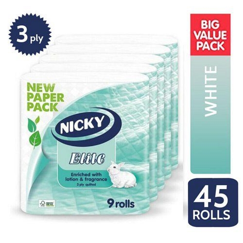 Nicky Elite White Toilet Rolls 9 Pack - PACK (5)