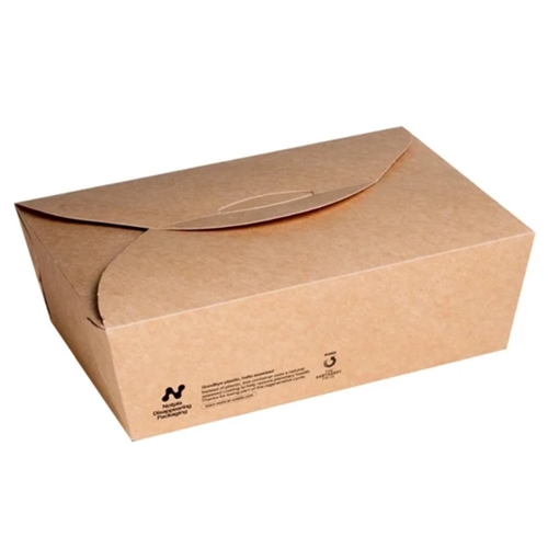 Unlike conventional takeaway boxes with petrol-based coatings, Notpla food containers embrace a kinder approach to the planet. Made with a 100% natural seaweed lining, these Notpla 1750ml kraft takeaway boxes are completely compostable, and just like fruit peel, will disappear without a trace. With an innovative leakproof seaweed coating, they can handle a variety of contents - hot, cold, wet, or dry - without fear of spills. Plus, their robust construction ensures food remains fresh and protected during transport.