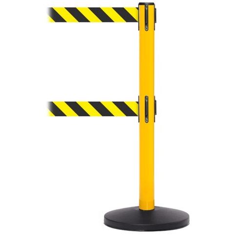 Obex Barriers® Safety Belt Barrier; Belt Length mm: 3400; Yellow Post; Black/Yellow Chevron