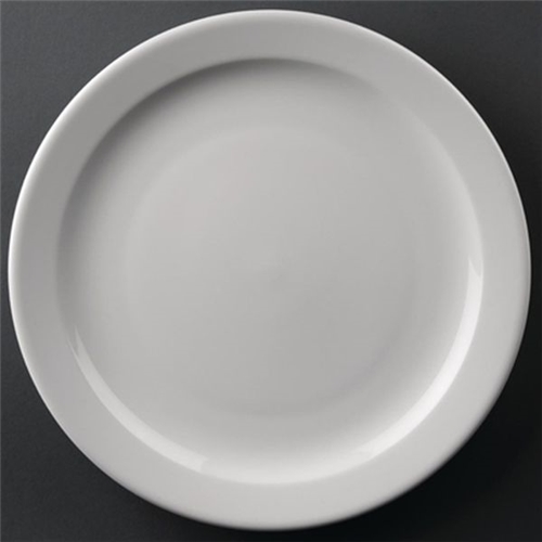 Olympia Athena's 10" porcelain narrow rimmed plates are the perfect addition to any table setting looking for a simple and clean finish with rimmed outer edge for subtle detail. Made for commercial use these plates are tough, functional and practical and at great value this popular crockery range is ideal for use in pubs, canteens and bistros.