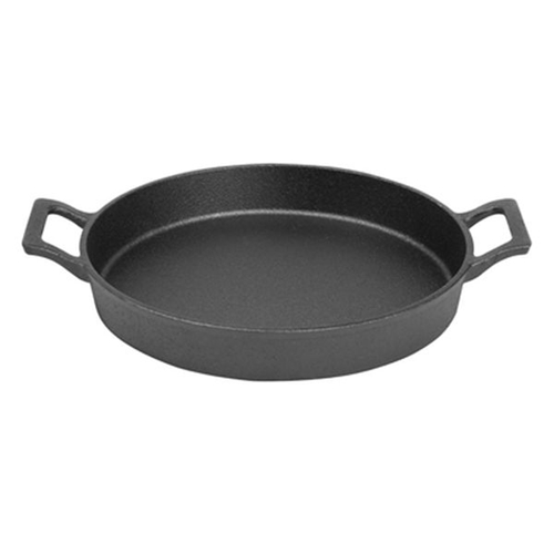 Prepare and serve food with a sizzle using this 200(Ø)x30(H)mm cast-iron round eared dish from Olympia. The dish is oven safe and designed for oven-to-table service - meaning you'll cut down on dishes and speed up your turnaround by saving time on plating up. Plus, the eared dish features two sturdy handles that are easy to carry, reducing the risk of accidental drops and spills. As well as being incredibly strong, the cast iron also has an authentic look that brings a rustic charm to your service, impressing guests with the presentation of their meal. For added convenience, the dish can be used on all cooking surfaces, including induction hobs.