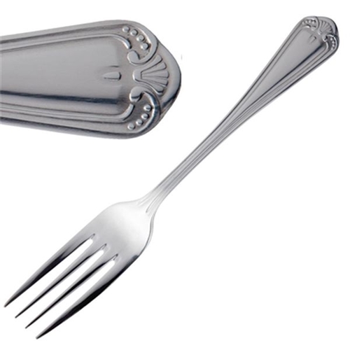 Polished 18/0 stainless steel with a shell motif detailed on the handle. Sold in dozens.