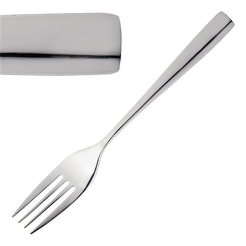Distinctive contemporary styling with subtly waved handles that fit the contours of the hand. Durable, forged 18/10 high polish stainless steel.