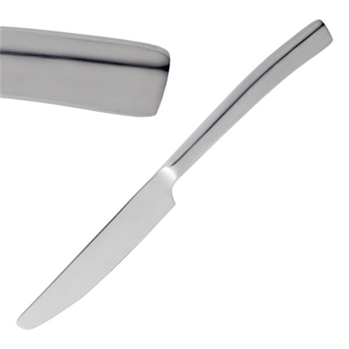 Distinctive contemporary styling with subtly waved handles that fit the contours of the hand. Durable, forged 18/10 high polish stainless steel.