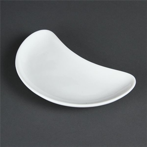 A great value, pure white porcelain, crescent shaped salad plate by Olympia, perfect for serving salads as well as hot foods. Durable and versatile, the plate is eaily stackable and has strengthened rolled edges for chip resistance.