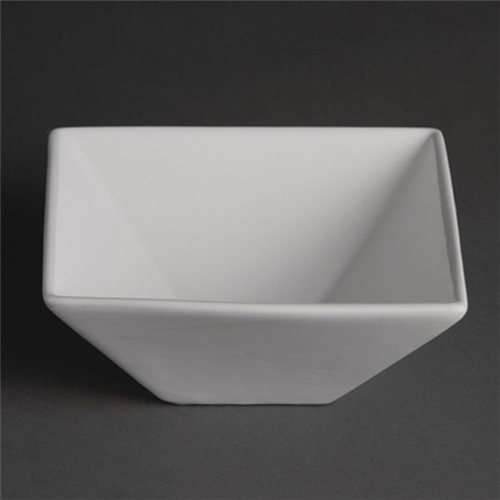 This pure white square bowl from Olympia is designed to provide a great value and hardwearing porcelain crockery solution for busy hotels, canteens, casual dining restaurants and cafes. Strengthened rolled edges ensure the bowl is chip resistant and the fully vitrified body gives great glaze durability, making it ideal to withstand the rigours of the professional catering environment. The bowl is stackable, helping maximise storage space, and oven, microwave, dishwasher and freezer proof.