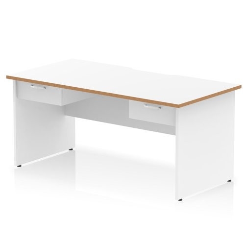 Oslo 1600 x 800mm Scalloped Edge Straight Office Desk White Top Natural Wood Edge White Panel End Leg Workstation 2 x 1 Drawer Fixed Pedestal