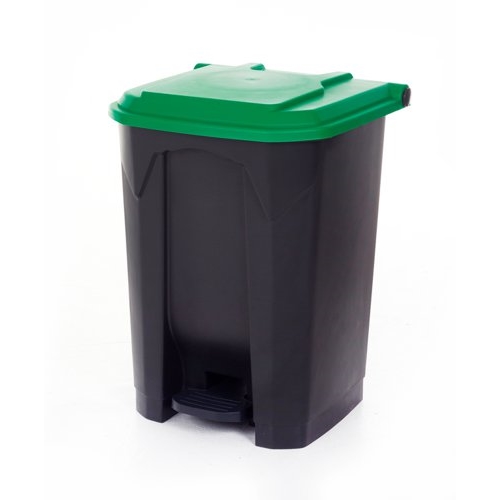 Pedal Bin; 50L; Polypropylene; Grey Body & Green Lid