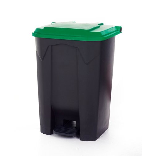 Pedal Bin; 80L; Polypropylene; Grey Body & Green Lid