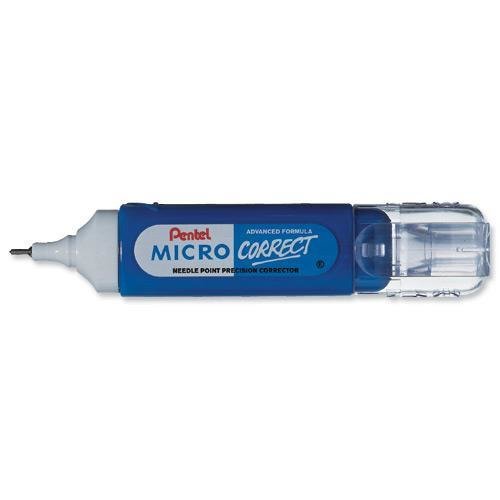 Pentel Micro Correct Correction Fluid Pen Needle Point Precision Tip 12ml Fine Ref ZL31-W - Pack 12