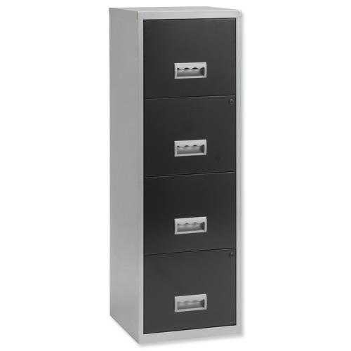 Pierre Henry Filing Cabinet Steel Lockable 4 Drawers A4 Silver and Black Ref 095809