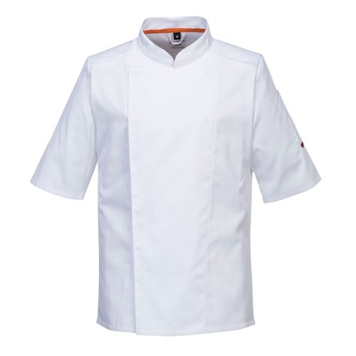 Designed with Mesh Air Pro mesh aerated panels, the C738 offers an ideal solution when it gets hot in the kitchen. Featuring highlighted trims, double breasted concealed front fastening and pen pocket. This chefs jacket has been designed for style and practicality.