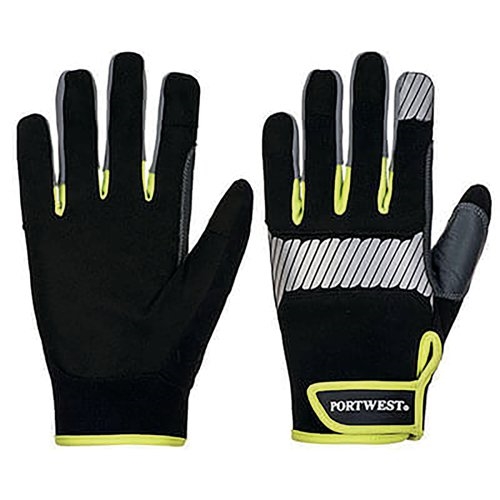 This high-performing glove is multi-purpose and suitable for any job. Lightweight and comfortable without compromising performance. PW3 reflective tape enhances wearer visibility in low light conditions. Reinforced thumb crotch and fingertips adds abrasion resistance in high wearing areas. Highly durable synthetic leather palm. This glove can be used on most touchscreen devices.