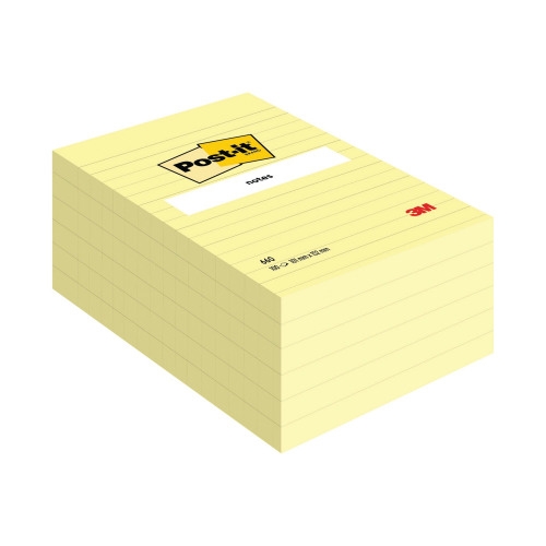 Ideal for longer messages, notes, reminders and checklists, these XXL Post-it Notes measure 101 x 152mm and are lined for neat notes. Each pad contains 100 sheets for long lasting use at work or at home. This pack contains 6 pads in classic Canary Yellow.
