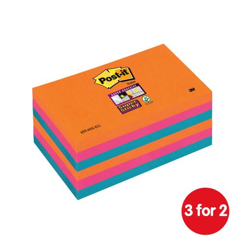 Post-it Super Sticky Colour Notes Pad 90 Sheets Electric Glow76x127mm [Pack 6] - 3 for 2