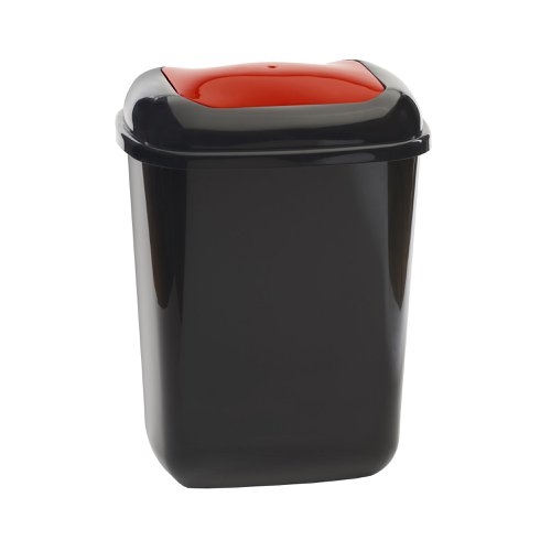 Push Spring Lid Bin c/w Sticker; 45L; Dark Grey Body; Red Lid; Plastic