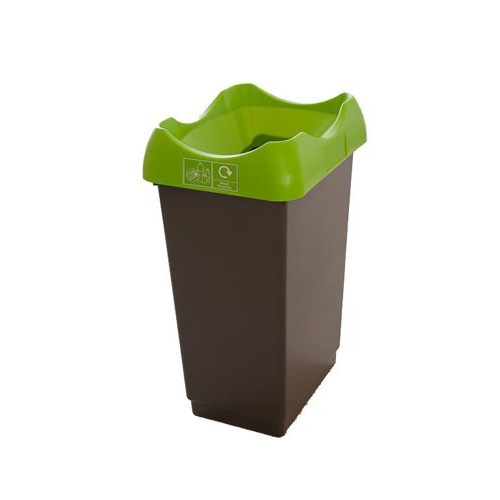Recycling Bin c/w Sticker; Open Hole; 50L; Grey Body; Lime Green Lid; Plastic
