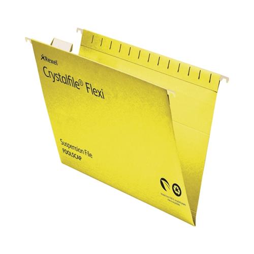 Rexel Crystalfile Flexifile Foolscap Suspension File Manilla V-base Yellow Ref 3000043 - Pack 50