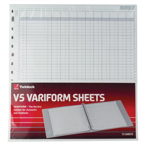 This Rexel Variform V5 Refill Pack is designed to provide a totally flexible and configurable accounting system to fit within Variform multi-ring binders. Loose leaf for ease of use, this refill pack consists of 75 10 cash column sheets for complete personalisation. Perfect for small to medium businesses, the Variform range of refill packs provides the ideal solution to accounts control and analysis.